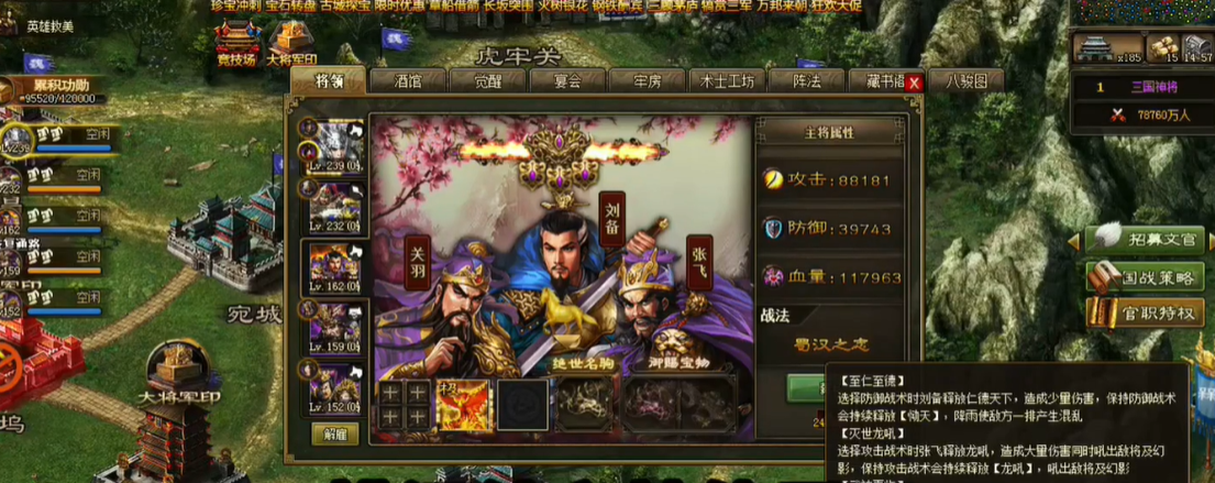 精确调整装备属性和攻击力能有效提升通关效率,建议将武将攻击力控制在1.1万左右以避免属性溢出。装备配置需选择神锤并下掉攻击神石,改用暴击或强袭属性宝石,若攻击超出可卸下御赐宝物。套装方面,驱虎、烛龙、霸下和灵龟等能提供额外增益,例如霸下套装可增强夏侯惇的输出和生存,使其单排击杀NPC。珍宝系统需优先提升生存属性,战车选择残三车或满二车以确保续航,而御宝以绿符、黄刀等基础属性为主,强化防御和血量。这些调整能帮助玩家在资源有限的情况下最大化战斗效能。
